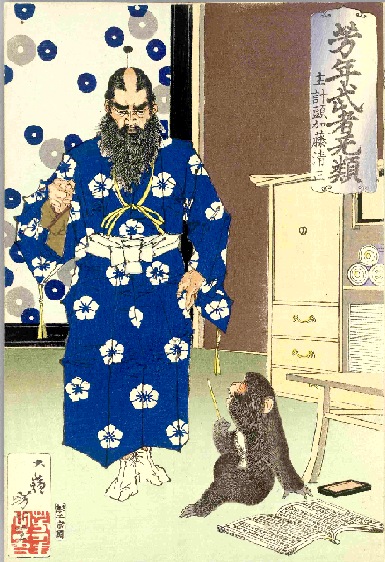 飼っていた猿が主人の真似をして筆を持ち論語に朱筆を入れました。