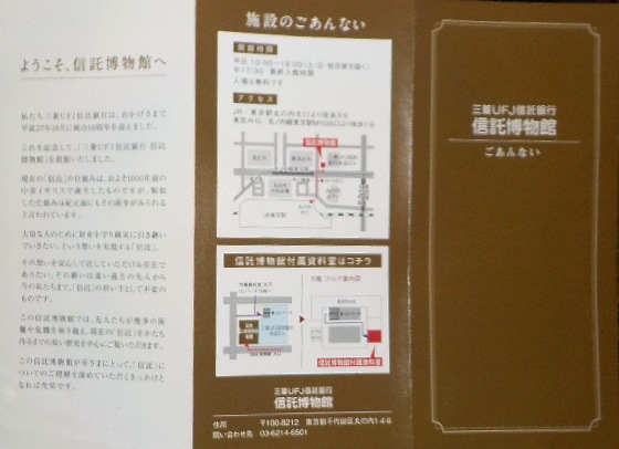 ○三菱UFJ信託銀行信託博物館 千代田区丸の内1-4-6日本工業倶楽部会館1階 03-6214-6501 HP