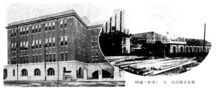 明治25年7月7日に大手町2-2-2に移転した東京電話交換局(左)が掲載されています。
