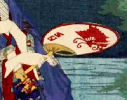 女性が持っている団扇には、扇屋の商標である「扇」が描かれています。
