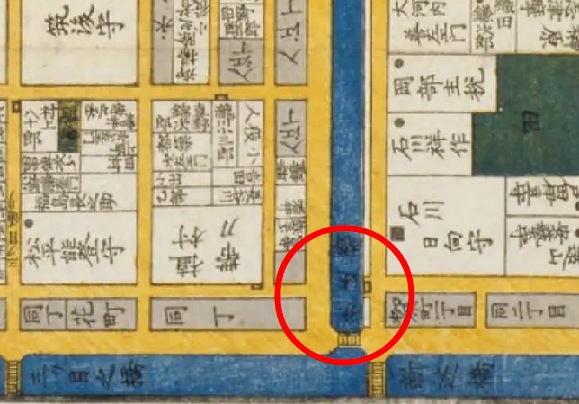 江戸切絵図から、「北辻橋」部分の抜粋です。