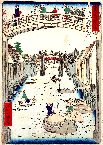 万治二年(一六五九)、縦の代表格、堅川の開削と同時に架けられ、隅田川から入って一ツ目の橋という意で命名されたのが、この一之橋で長さ十三間、幅二間半ほどありました。