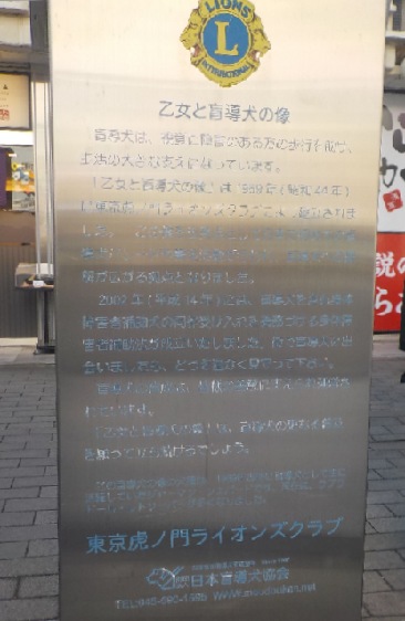 「乙女と盲導犬の像」の近くには東京虎ノ門ライオンズクラブの記念モニュメントがあります。