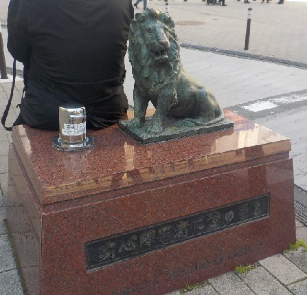 ライオン像の左手に銀の筒の募金箱があり、募金は港区社会福祉協議会を通じて、福祉事業に利用されています。